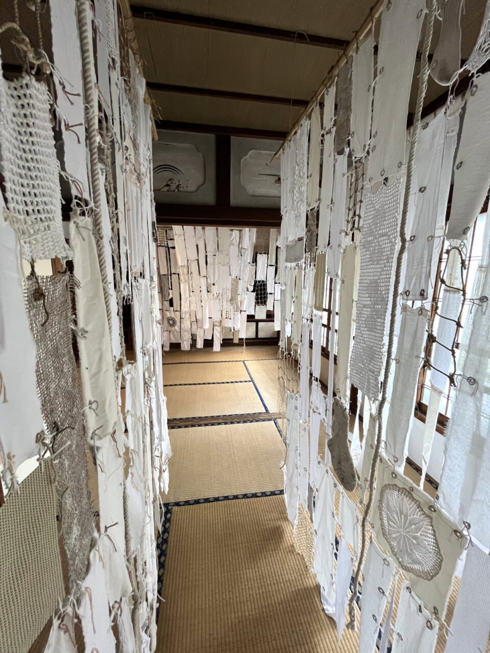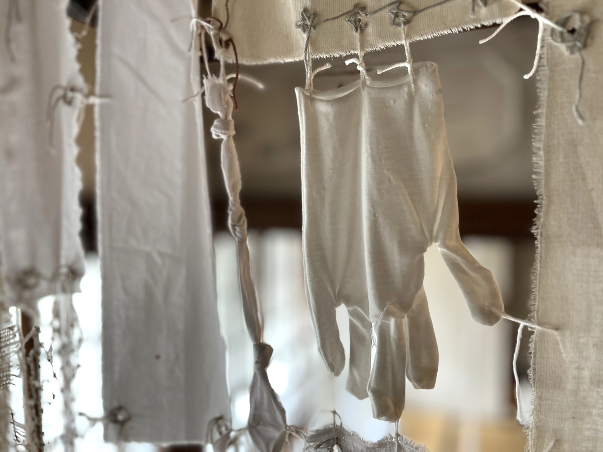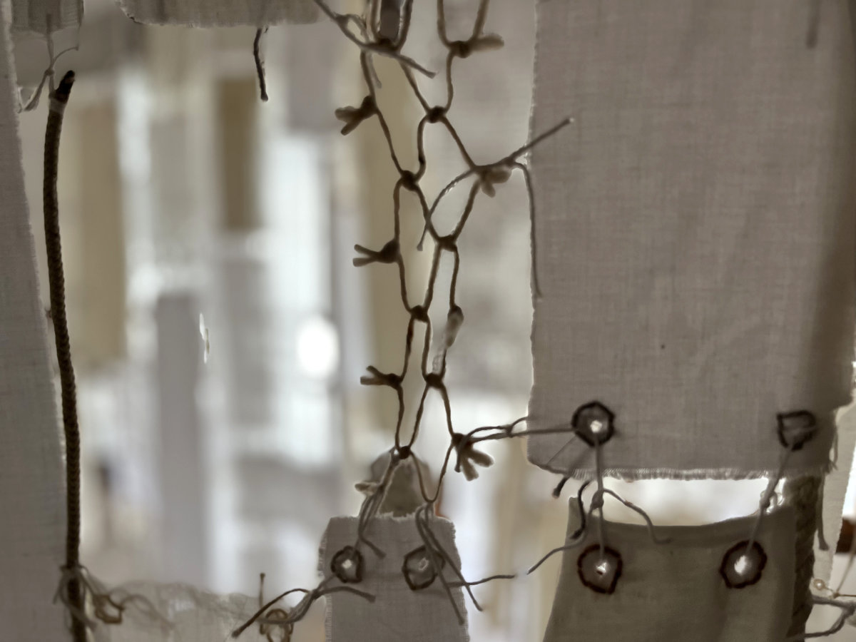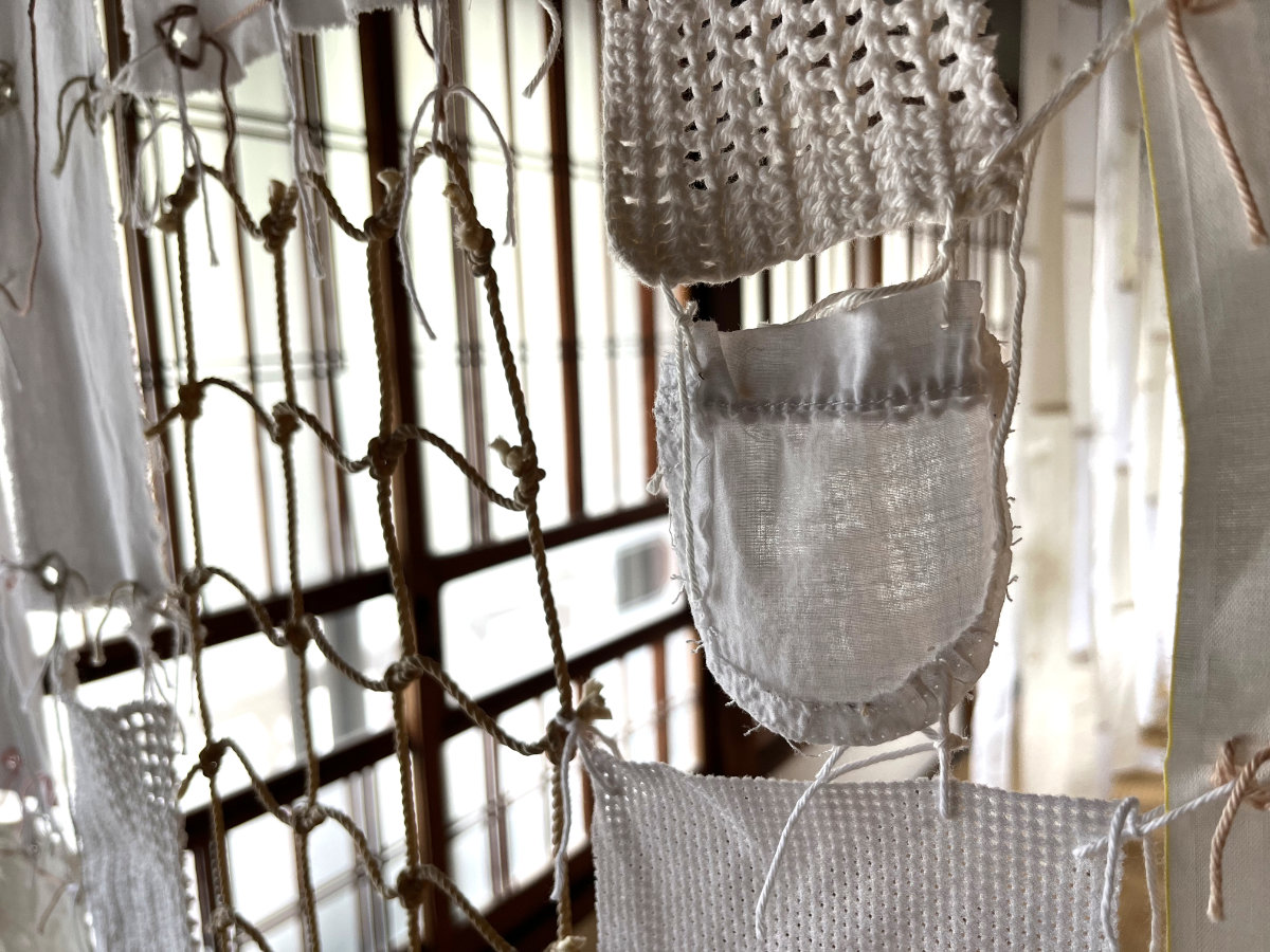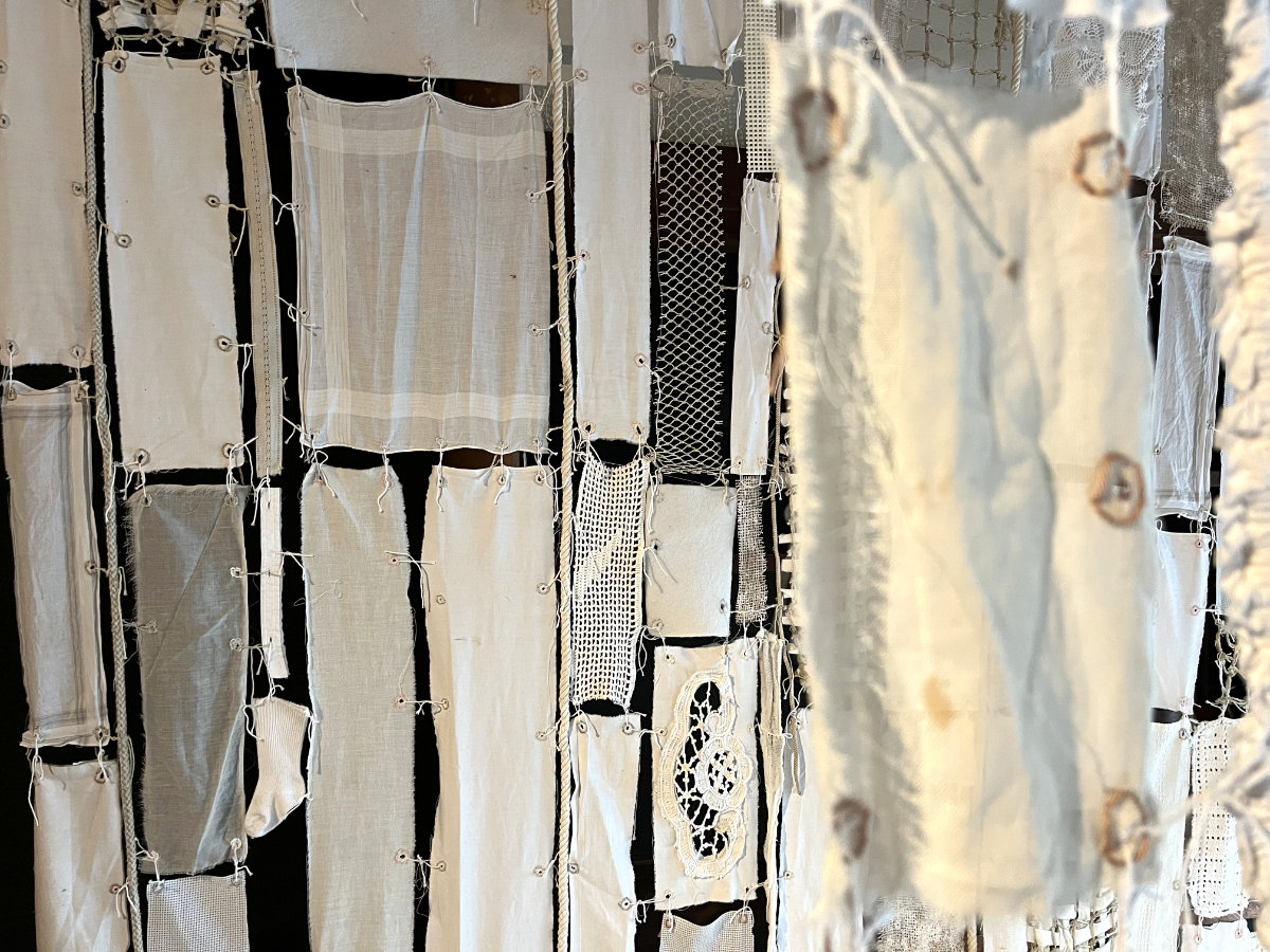 Dozens of used textile pieces are woven together into a labyrinth, creating a meditative installation of an illusionary laundry poem. The piece highlights the value of sustainability and mindful craftsmanship in an area that was once known for its small scale silk and textile industry. The white textiles and embroidery symbolize innocence and surrender to the unknown, inviting us to contemplate the quiet resilience found in everyday objects.