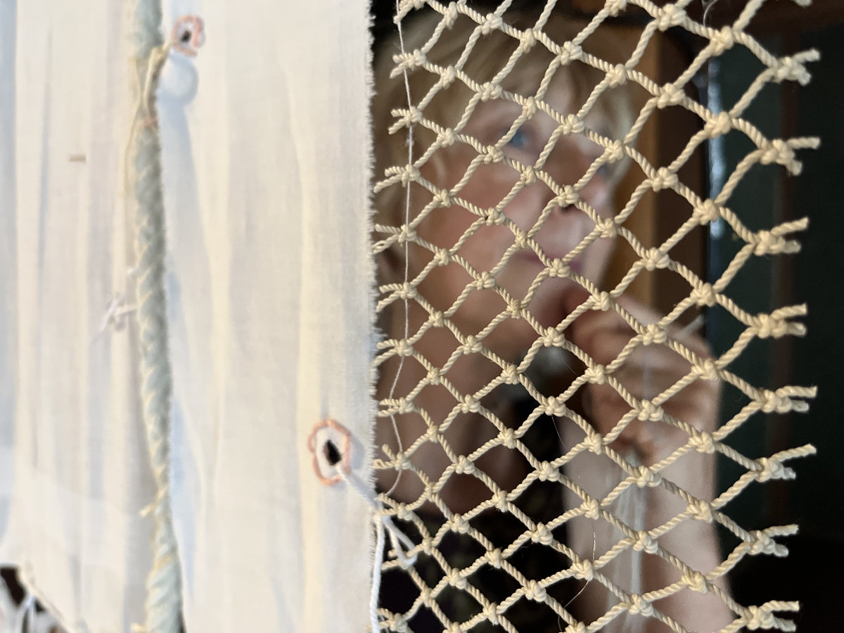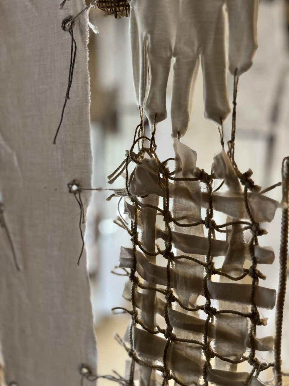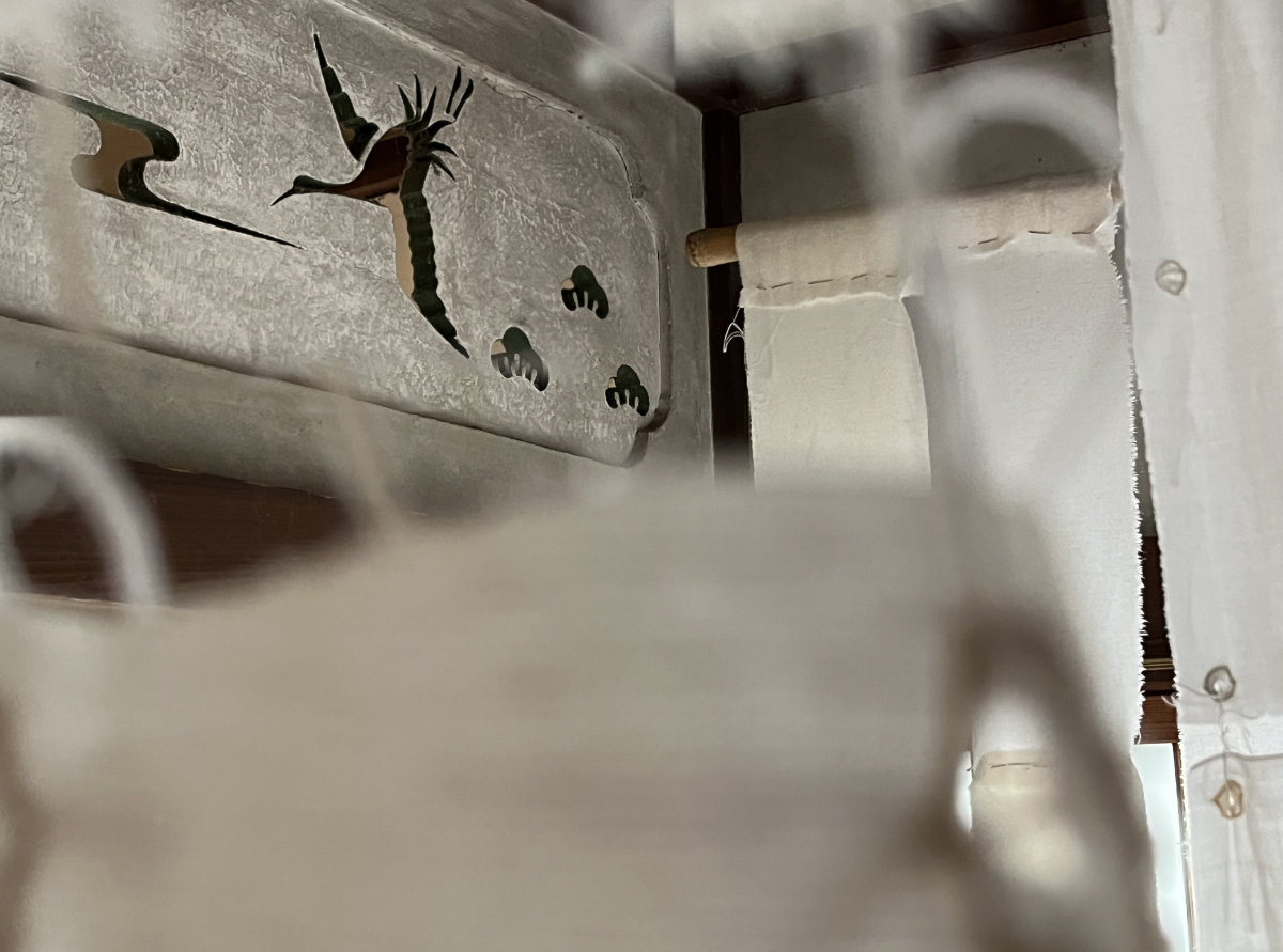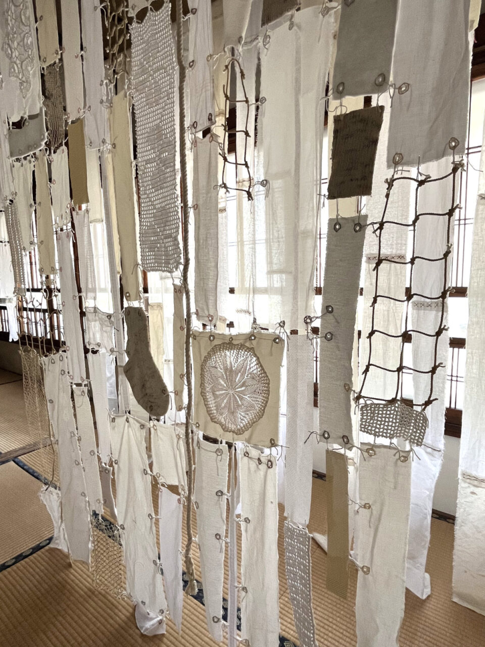 Dozens of used textile pieces are woven together into a labyrinth, creating a meditative installation of an illusionary laundry poem. The piece highlights the value of sustainability and mindful craftsmanship in an area that was once known for its small scale silk and textile industry. The white textiles and embroidery symbolize innocence and surrender to the unknown, inviting us to contemplate the quiet resilience found in everyday objects.